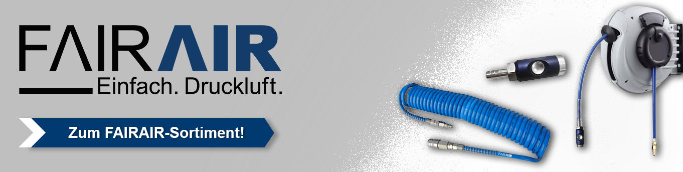 Der FAIRAIR Spiralschlauch PUR SP-PU-66 aus robustem Polyurethan mit Innendurchmesser 6,5 mm überzeugt auf ganzer Linie: Im ausgezogenen Zustand misst der Druckluft Spiralschlauch 6 m und lässt sich flexibel für die verschiedensten Druckluftanwendungen bis 10 bar einsetzen. Und das ohne zusätzliches Zubehör: Am FAIRAIR Spiralschlauch PUR sind die passenden Anschlussstücke bereits vormontiert. Mit dem Nippel NW 7,2 mm können Sie den Spiralschlauch an Ihren Kompressor oder Ihre Rohrleitung problemlos anschließen. Mit der Universalkupplung verbinden Sie Ihr gewünschtes Werkzeug. Das Besondere dabei: Die Kupplung eignet sich für Stecknippel mit Euro-, ARO oder ISO-Profil mit einer Nennweite von 7,2 bis 8,0 mm. Aber damit nicht genug: Drehgelenke an beiden Anschlüssen sorgen dafür, dass der FAIRAIR Spiralschlauch PUR immer richtig gewickelt ist. Knickschutzfedern an beiden Enden ermöglichen einen konstanten Luftdurchfluss ohne Abknicken. Dank des kleinen Windungsdurchmessers benötigt der Schlauch außerdem nur wenig Platz zum Verstauen. Alles in allem erhalten Sie mit dem FAIRAIR SP-PU-66 ein durchdachtes und hochwertiges Druckluftprodukt. FAIRAIR – Einfach. Druckluft.